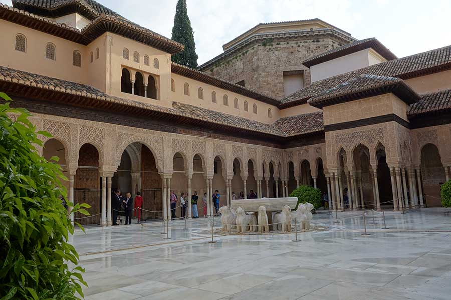 During the visit to this emblematic monument of Granada, we will be captivated by the beauty of the Nasrid Palaces, where light, water and geometry create spaces full of magic and spirituality. The delicate epigraphy that adorns the walls turns the Alhambra into a palace that describes itself, revealing the symbolic depth of Nasrid art.